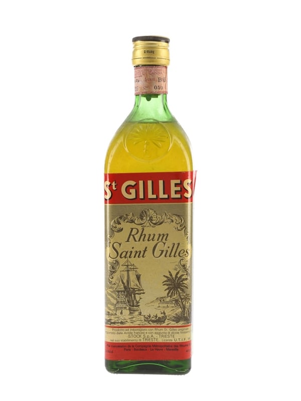A bottle of Saint Gilles Rhum. This was produced by Stock in Trieste, Italy, with rum originally imported from the French Caribbean. We estimate this was bottled in the 1960s.