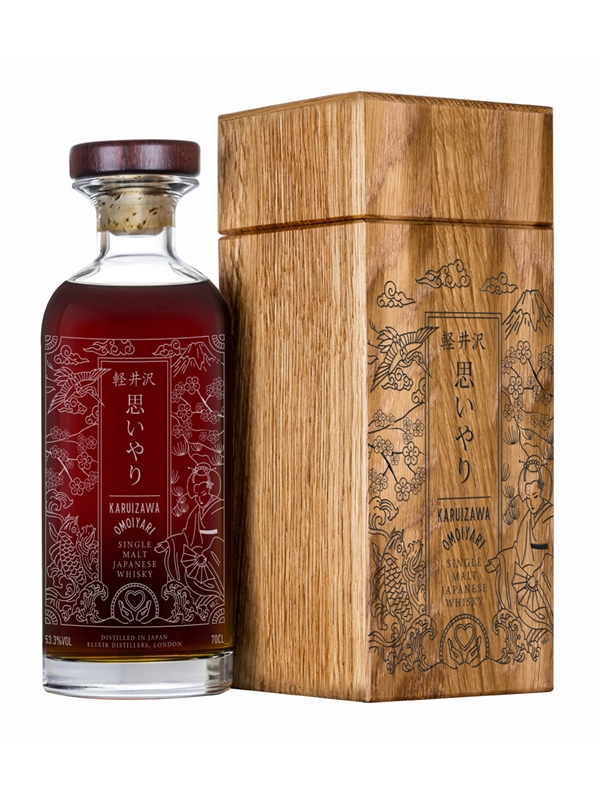 A bottle of Karuizawa Omoiyari Single Malt Japanese Whisky, bottled in 2020 by Elixir Distillers.