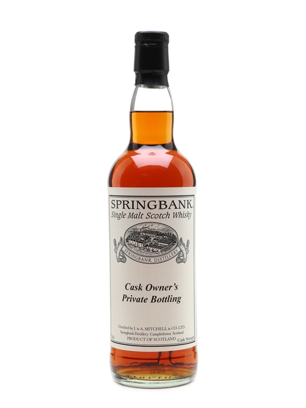 A bottle of Springbank from a private owner's cask. This was distilled in 1995, matured in a Fonseca 1970 vintage port cask, and bottled at cask strength in 2014.