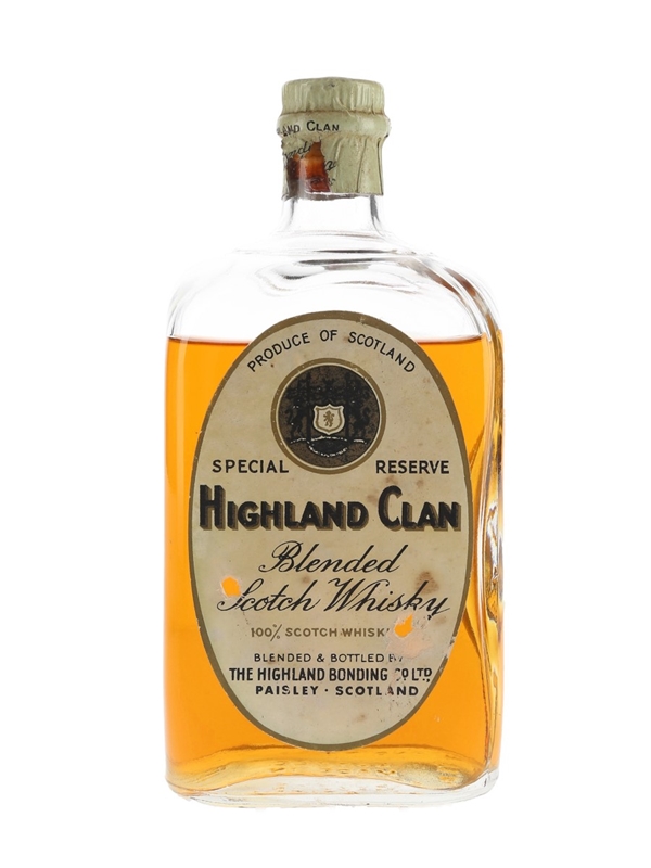 A bottle of Highland Clan Special Reserve Blended Scotch Whisky. This was blended and bottled by The Highland Bonding Co. Ltd., we estimate in the 1950s to 1960s.