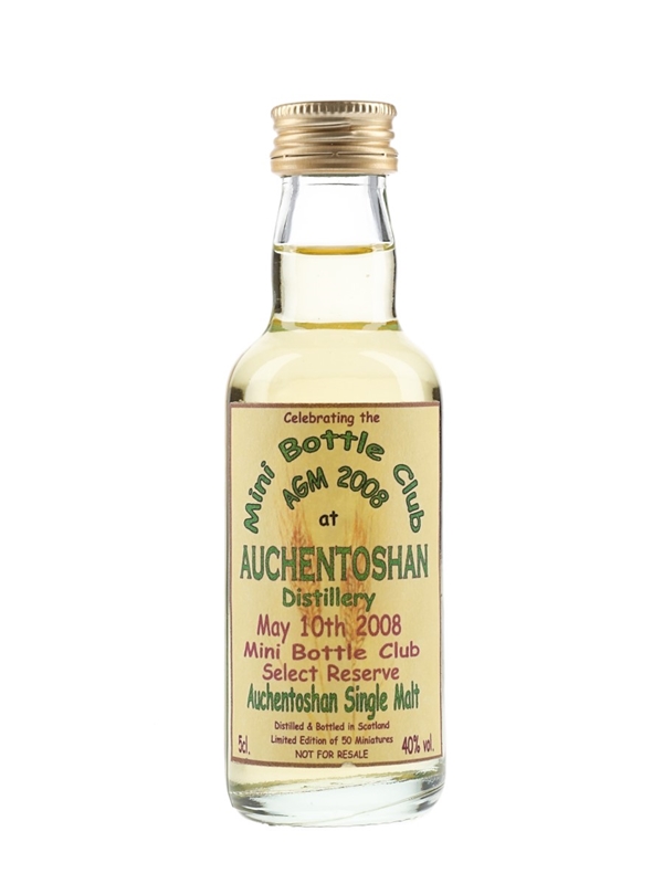 A miniature bottle of Auchentoshan Select Reserve Single Malt Scotch Whisky bottled to celebrate the Mini Bottle Club Annual General Meeting in 2008.
