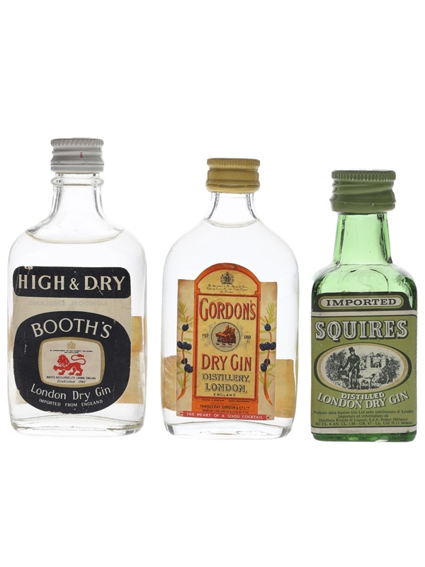 Booth's, Gordon's & Squires London Dry Gin Bottled 1970s-1980s 3 x 3.9cl-4cl