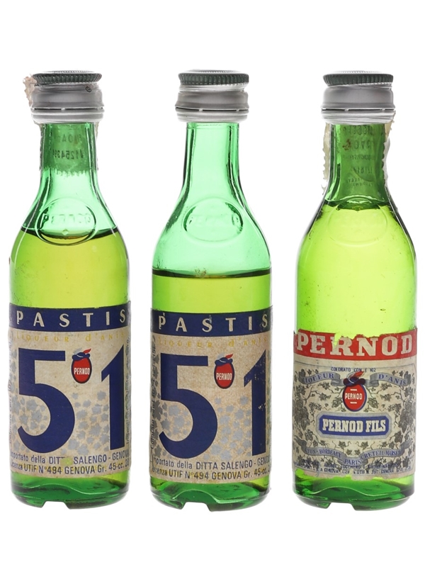 Pernod Fils & Pastis 51 Bottled 1970s-1980s 3 x 2.8cl / 45%