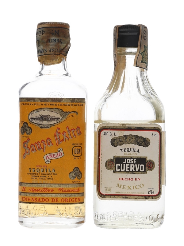 Jose Cuervo Tequila Blanco & Sauza Tequila Anejo Bottled 1960s-1970s 2 x 5cl
