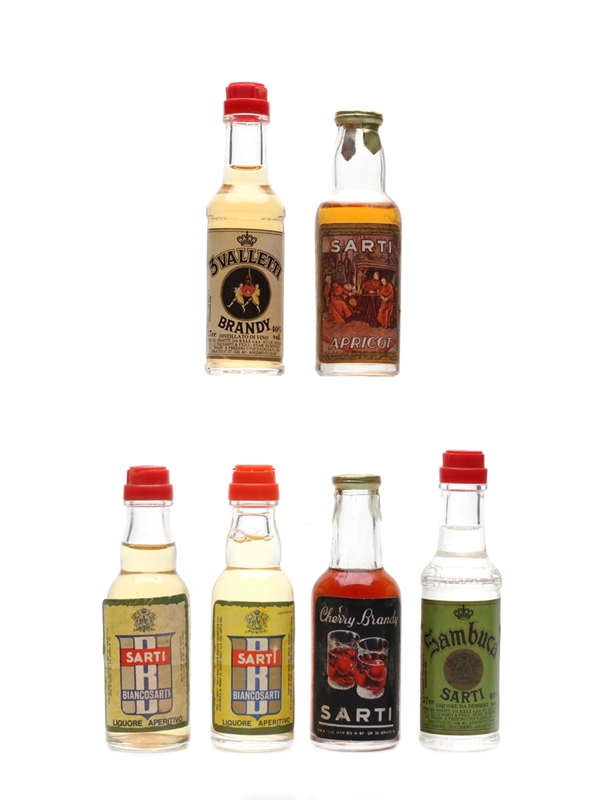 This lot contains six miniature bottles of Italian liqueur produced by Sarti: