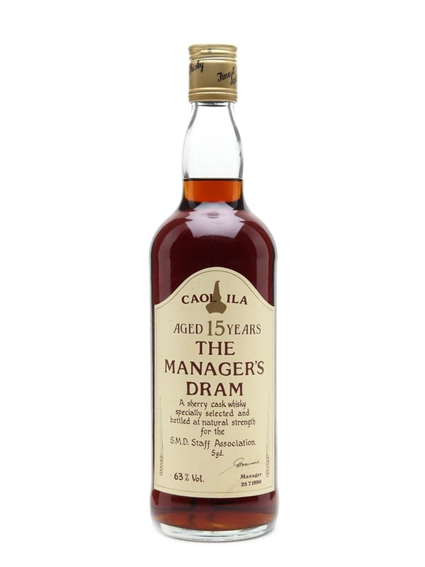 A legendary bottle of Caol Ila 15 Year Old, selected by the Diageo distillery managers and released as part of the Manager's Dram series and originally given to friends and employees of the distillery and not openly sold to the public.