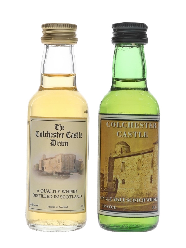 This lot contains two miniature bottles of Colchester Castle Scotch Whisky:
