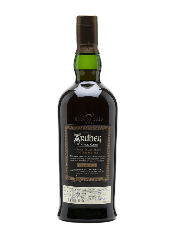 A sherry butt of Ardbeg from the legendary 1976 batch, this rare whiskywas bottled for the Feis Ile in 2004. Bottle, No.397.