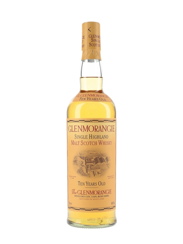 A bottle of Glenmorangie 10 Year Old Single Highland Malt Scotch Whisky. We estimate this was bottled in the 1990s to early 2000s.