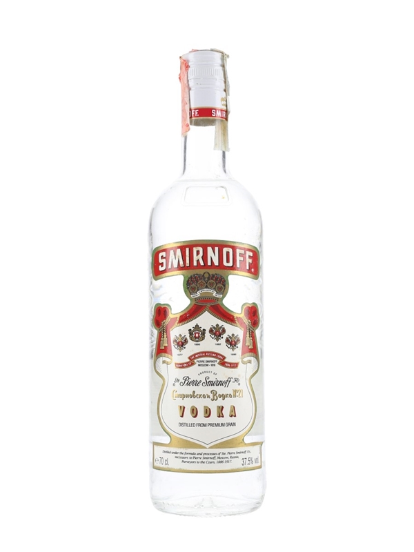 A bottle of Smirnoff Red Label vodka. This was imported to Italy, we estimate in the 1990s.