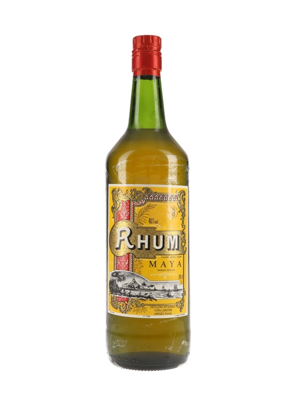 A litre bottle of Maya Foudré Grand Arôme Rhum from Distillerie Artisanale Turin-Labidoire, France. We estimate this was bottled in the 1980s.