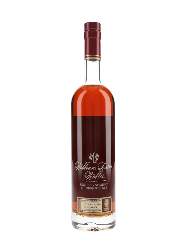 A bottle of William Larue Weller Barrel Proof Kentucky Straight Bourbon Whiskey, bottled at 64% ABV and released in 2019 as part of the Buffalo Trace Antique Collection.