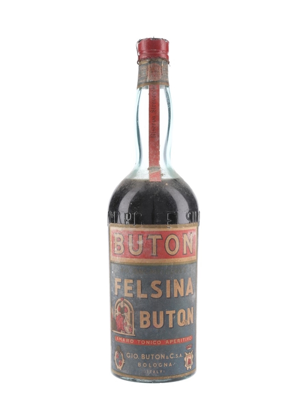 A litre bottle of Buton Felsina, a bitter herbal liqueur from Bologna, Italy. The duty medal indicates this was bottled between 1947 and 1949.