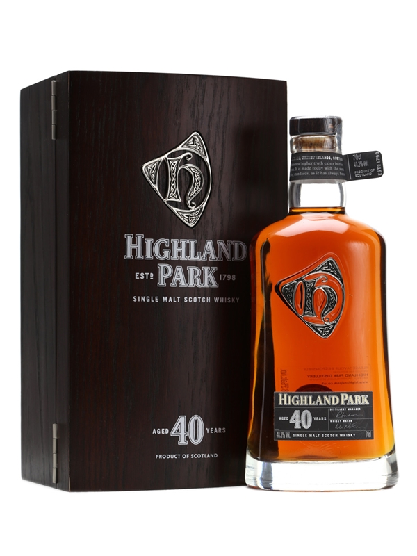 An outstanding Highland Park, bottled at a remarkable 40 Year Old. It is presented in an extremely heavy box with proper hinges and magnetic closure, with a leather-bound booklet inside extolling the virtues of distillery and dram.
