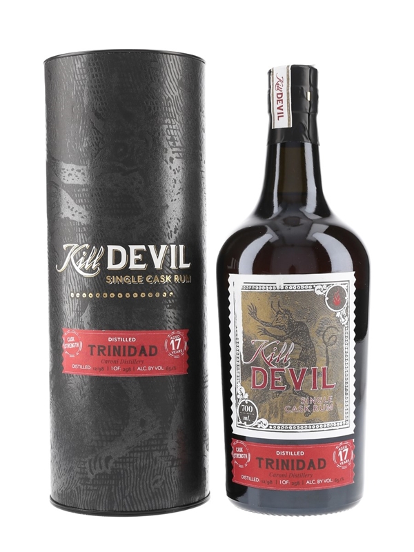 A bottle of Kill Devil 17 Year Old Single Cask Rum from Trinidad. This was distilled in December 1998 at Caroni Distillery and bottled at a cask strength of 63.1% ABV by Edition Spirits.