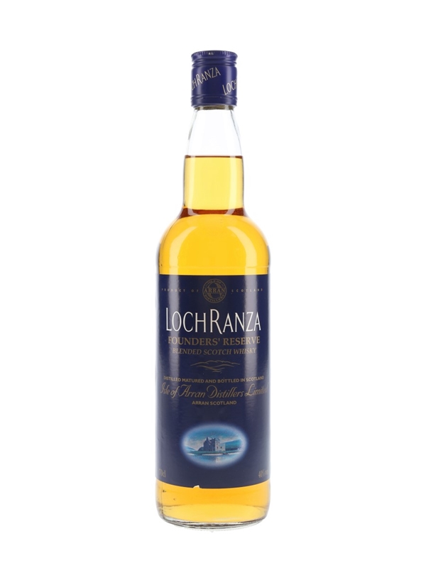 A bottle of Lochranza Founders' Reserve Blended Scotch Whisky. This was bottled for those who invested in the Arran distillery when it first opened in 1995 and contains a high proportion of Arran malt.