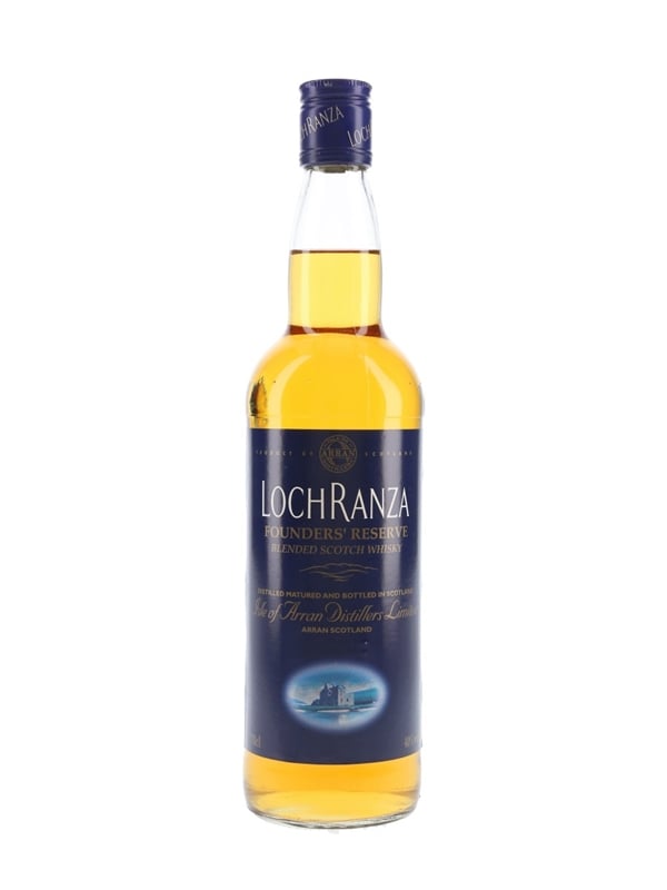 A bottle of Lochranza Founders' Reserve Blended Scotch Whisky. This was bottled for those who invested in the Arran distillery when it first opened in 1995 and contains a high proportion of Arran malt.