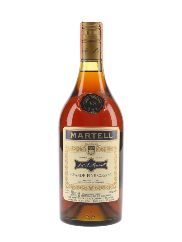 A bottle of Martell 3 Star VS Grande Fine Cognac. This was bottled for the Italian market and imported by Spirit, we estimate in the 1970s.