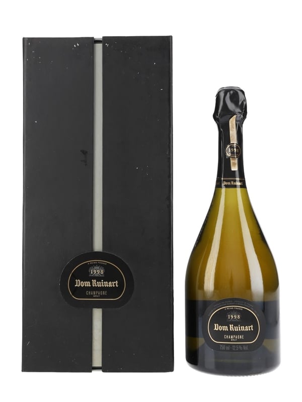 A bottle of 1998 Dom Ruinart Brut Champagne produced using 100% Chardonnay and matured for 12 years on lees.