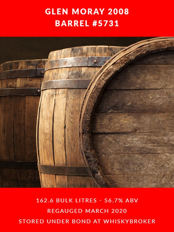 Glen Moray 2008 Cask 5731 Barrel - 162.6 litres 56.7%