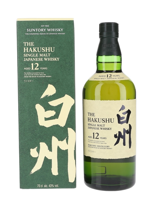 A bottle of Hakushu 12 Year Old Single Malt Japanese Whisky. This was imported to the UK by Beam Suntory UK Ltd.