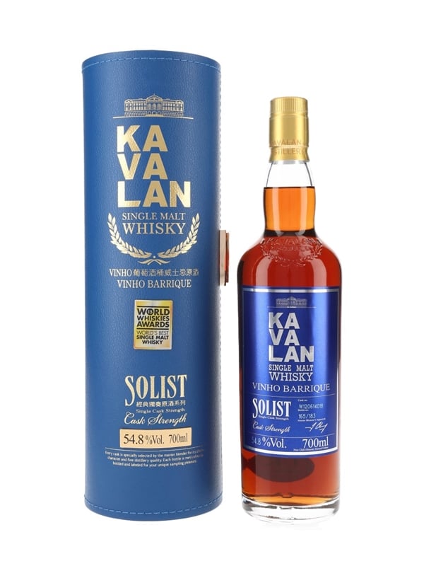 A bottle of Kavalan Solist Vinho Barrique Single Malt Taiwanese Whisky. This was distilled in 2012, matured in ex-wine casks selected by the distillery's Master Blender and imported to the German market by King Car Germany. The bottling code indicates this was bottled on 7 December 2017.