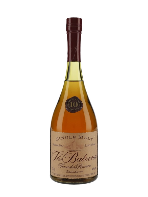 A bottle of The Balvenie 10 Year Old Founder's Reserve Highland Malt Scotch Whisky. We estimate this was bottled in the 1980s.
