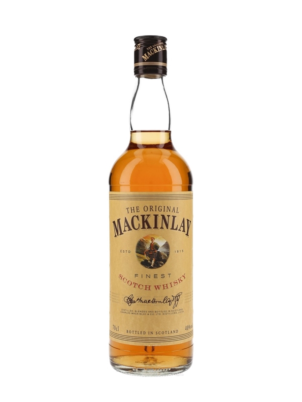 A bottle of The Original Mackinlay Finest Scotch Whisky, distilled, blended and bottled Charles Mackinlay & Co. Ltd. We estimate this was bottled in the 1990s.