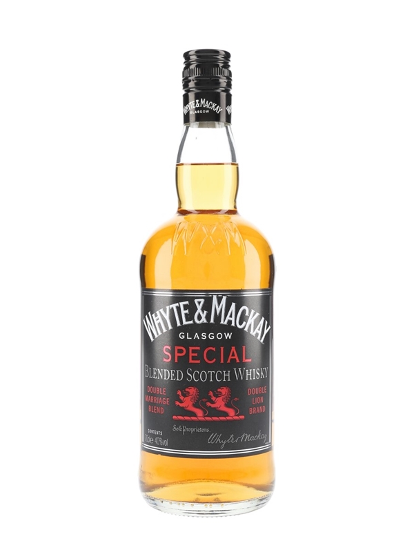A bottle of Whyte & Mackay Special Blended Scotch Whisky. The 'first marriage' of single malts lasts for several months, before aged grain whiskies are blended with the malts and allowed to marry for a second time in sherry casks.