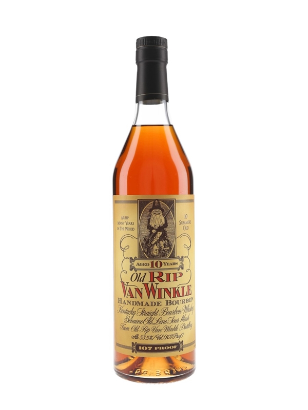 A bottle of Old Rip Van Winkle 10 Year Old Handmade Bourbon, distilled, aged and bottled by Old Rip Van Winkle Distillery, Frankfort. The bottling code indicates this was bottled in 2019.