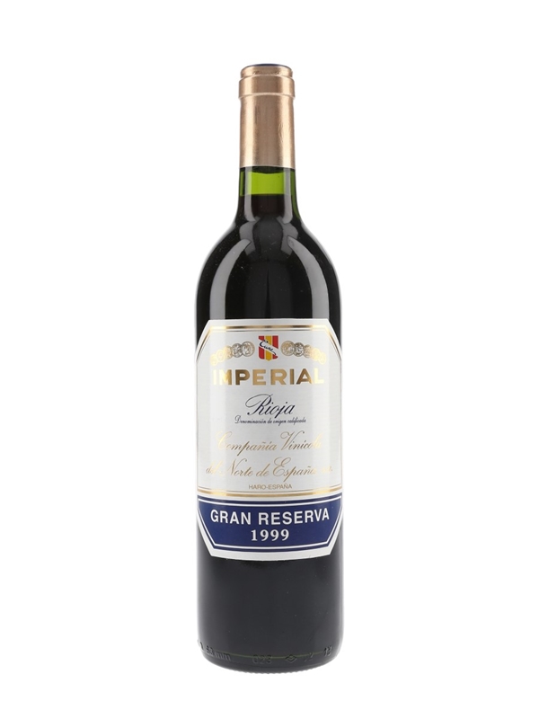 A bottle of CVNE Imperial 1999 Gran Reserva Rioja from Spain.