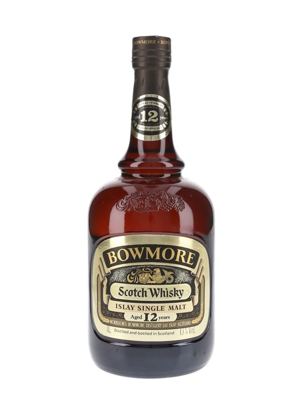 A litre bottle of Bowmore 12 Year Old Islay Single Malt Scotch Whisky. We estimate this was bottled in the 1980s.