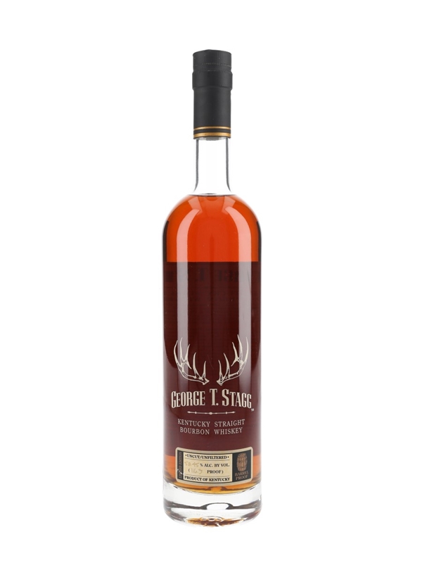 A bottle of George T Stagg Barrel Proof Kentucky Straight Bourbon Whiskey, bottled at 58.45% ABV for Buffalo Trace's Antique Collection in 2019. This was imported to the UK by Hi-Spirits Ltd.