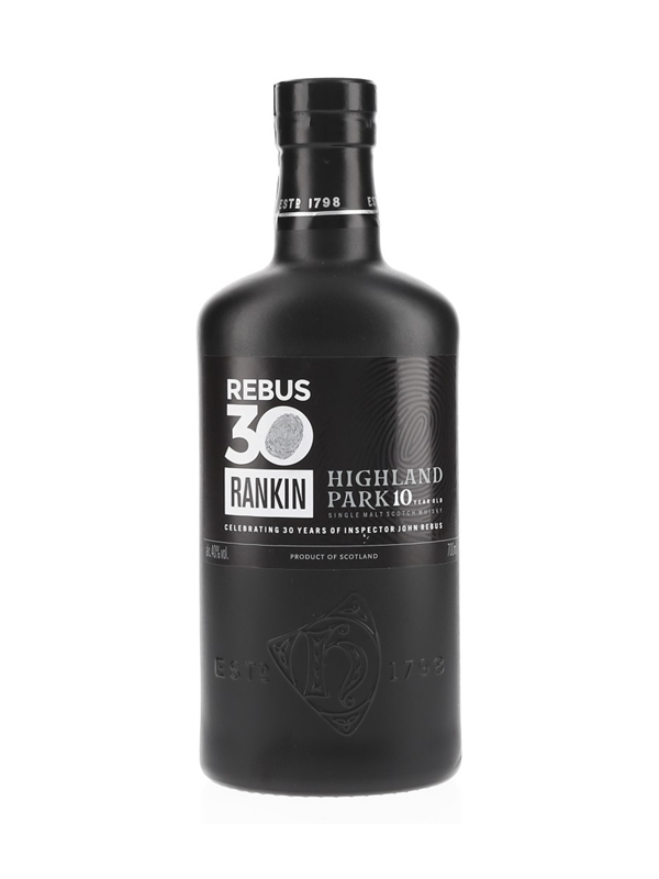 A bottle of Highland Park 10 Year Old Single Malt Scotch Whisky. This was released to celebrate 30 years of fictional detective Inspector Rebus.