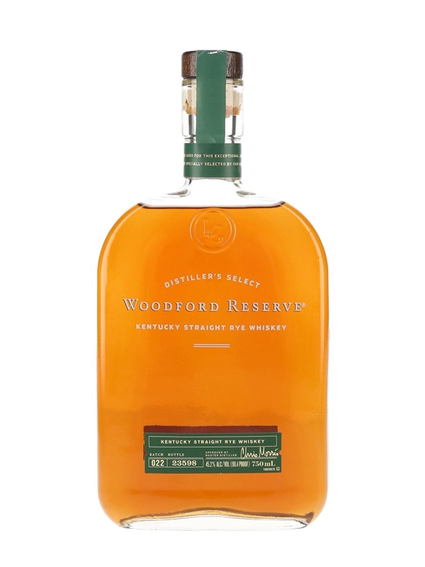 A bottle of Woodford Reserve Distiller's Select Kentucky Straight Rye Whiskey.