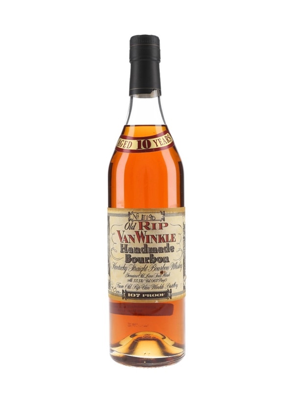 A bottle of Old Rip Van Winkle 10 Year Old Handmade Bourbon, distilled, aged and bottled by Old Rip Van Winkle Distillery, Frankfort. This was imported to the UK by Amathus. The bottling code indicates this was bottled between 2007 and 2013.