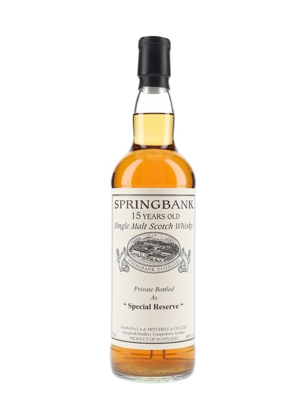 A private cask bottling of Springbank 15 Year Old Single Malt Scotch Whisky. This was distilled in 1996, matured in a single hogshead and bottled at 46% ABV as Special Reserve.
