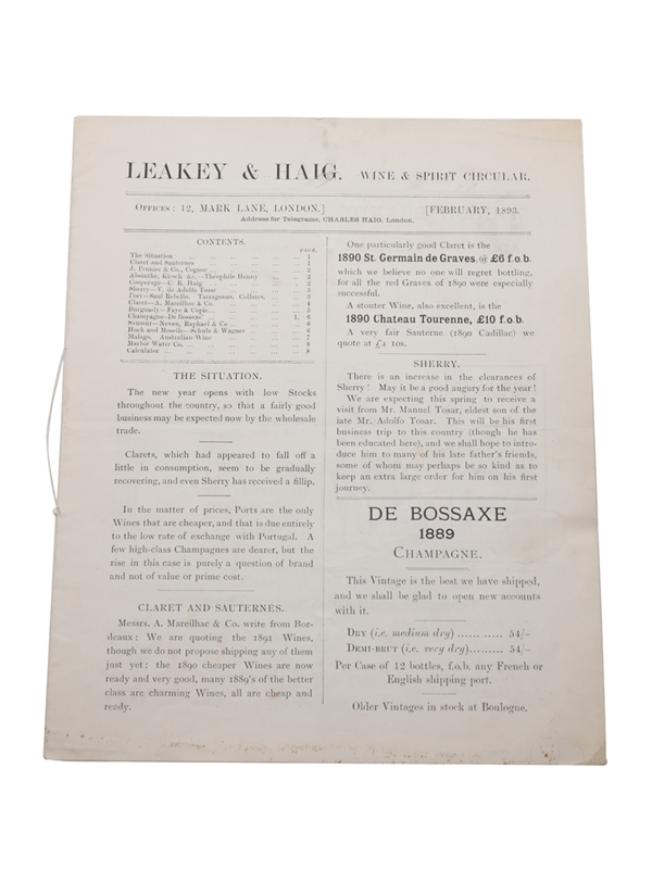 Leaky & Haig Wine & Spirit Circular, February 1893