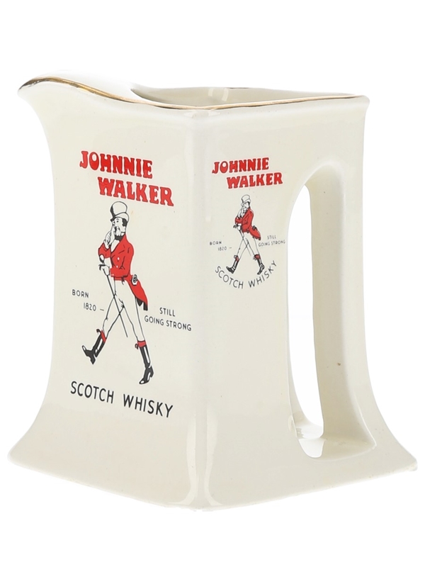 A branded ceramic Johnnie Walker Scotch Whisky water jug, Born 1820 - Still Going Strong. This was made in France by Moulin des Loups.