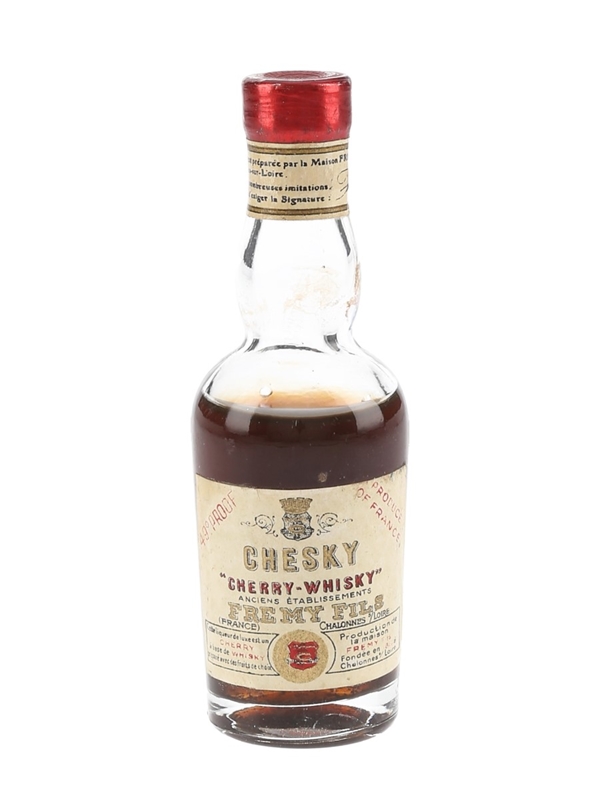 A miniature bottle of F Remy Fils Chesky Cherry Whisky from France. We estimate this was bottled in the 1950s.