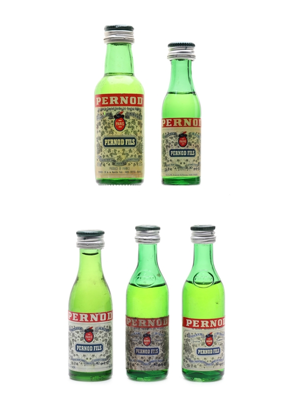 Pernod Fils Bottled 1970s-1980s 5 x 2cl-5cl