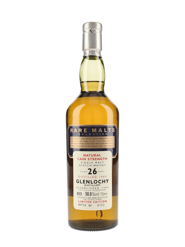 A bottle of Glenlochy 1969 from Diageo's Rare Malts series. This was matured for 26 years and bottled at cask strength in the mid 1990s.