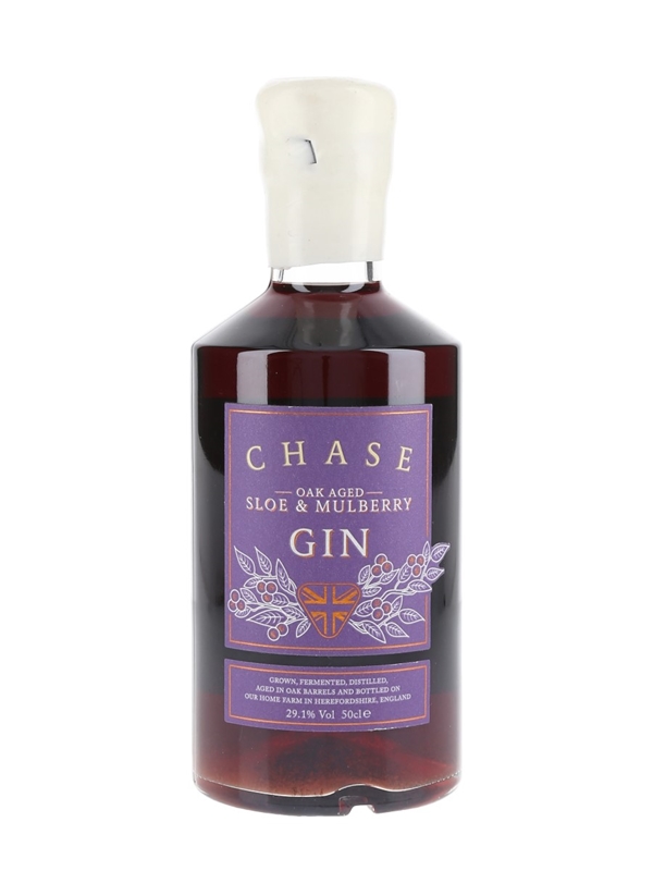 A 50cl bottle of Williams Chase Oak Aged Sloe & Mulberry Gin, grown, distilled and bottled in Herefordshire, England.