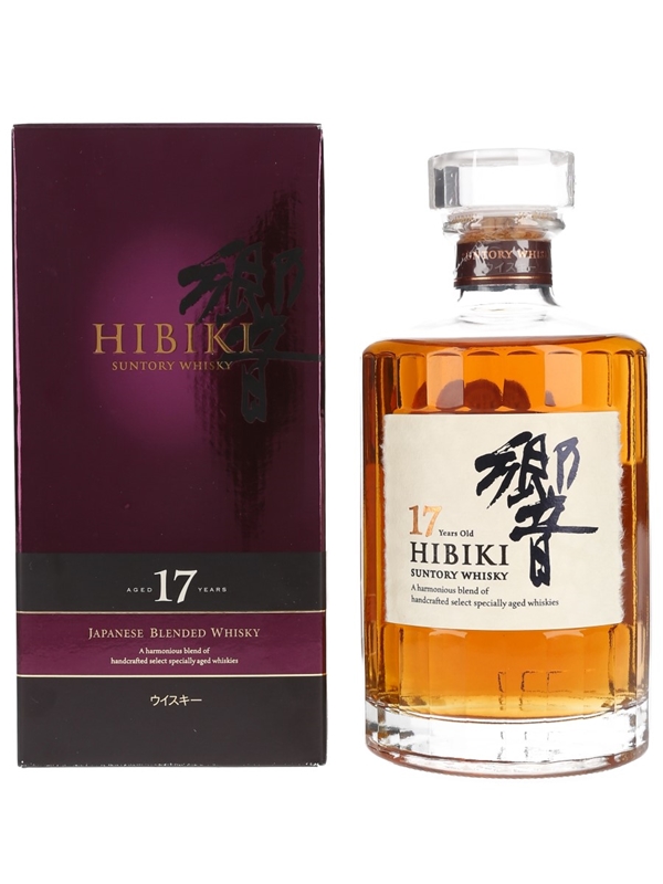 A bottle of Hibiki 17 Year Old Japanese blended whisky. This was imported to the UK by Morrison Bowmore Distillers Ltd.