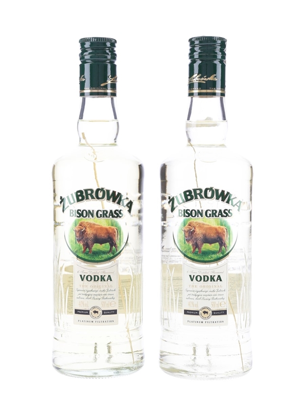 This lot contains two bottles of Żubrówka Bison Grass Vodka, The Original Polish Brand.