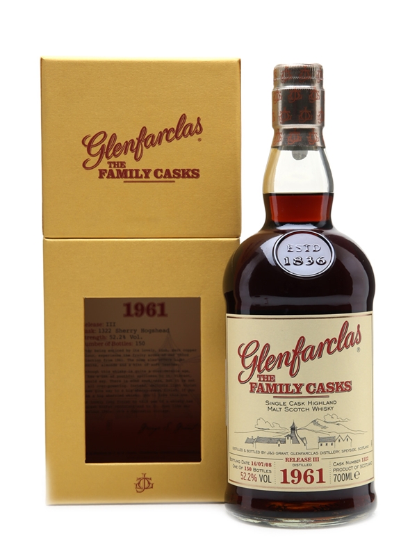 A very rare bottling of 1961 vintage Glenfarclas, released as part of The Family Casks single-cask series in 2008.