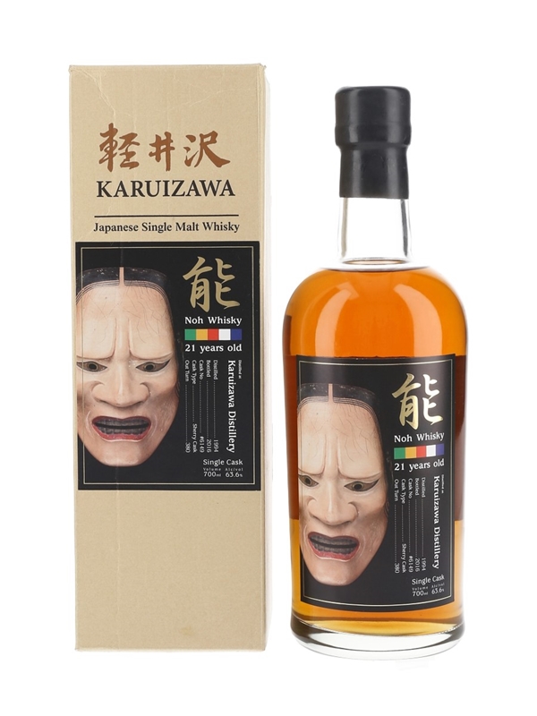 A bottle of Karuizawa 21 Year Old Single Cask Malt Whisky from the Noh series. This was distilled in 1994, matured in a single sherry cask and bottled at cask strength in 2016.