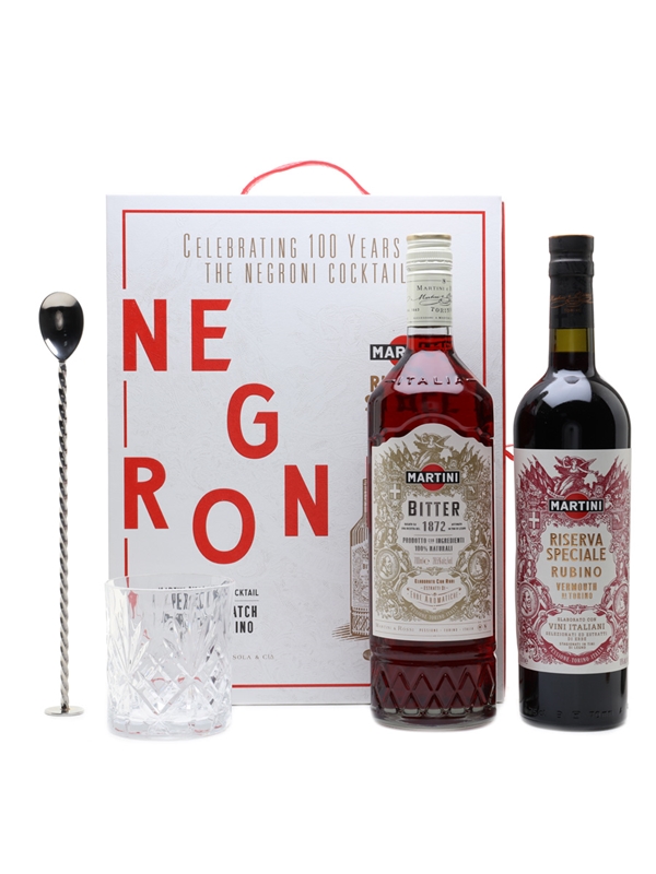 The Martini Martini Riserva Speiale Negroni from Turin, Italy, was created to celebrate 100 years of the Negroni cocktail. This set includes: