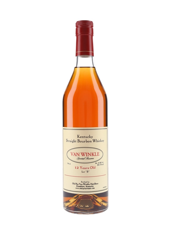 A bottle of Van Winkle 12 Year Old Special Reserve Kentucky Straight Bourbon Whiskey, bottled by Old Rip Van Winkle Distillery, Frankfort.