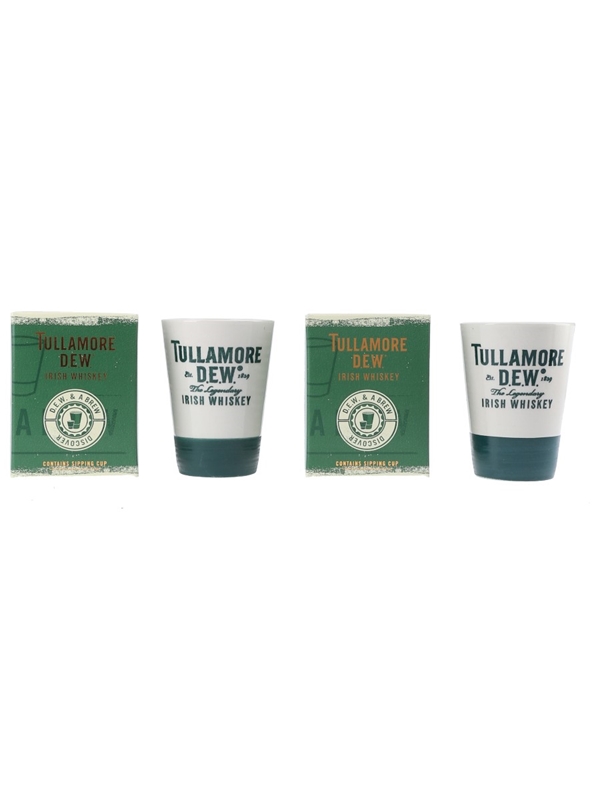 A pair of Tullamore D.E.W. ceramic sipping cups, made to enjoy a Dew & A Brew.